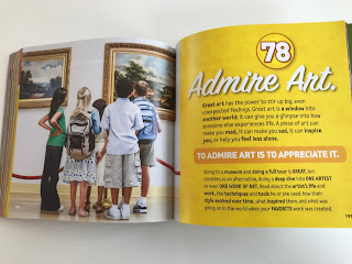 I like this book on many levels. November is a perfect time to think and talk about being thankful. This can be hard to do with middle school age kids but this book presents the topic in a way that will connect with them. There are literally 100 great ideas on ways to be thankful and each one is presented in a crisp, colorful summary. The best way to show you what I mean is with pictures of some of the pages.